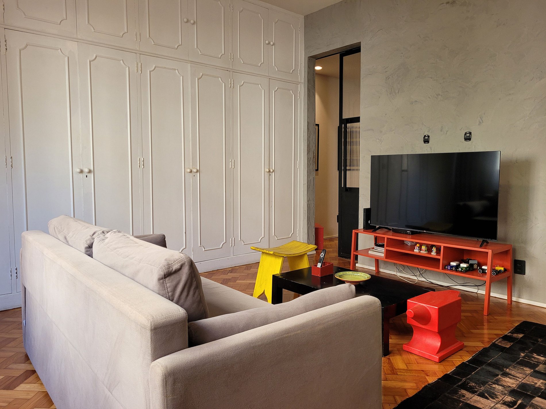 Os hóspedes terão acesso a todas as dependências privativas do apartamento. Uma porta do armário da sala fica bloqueada com pertences do proprietário do apartamento.