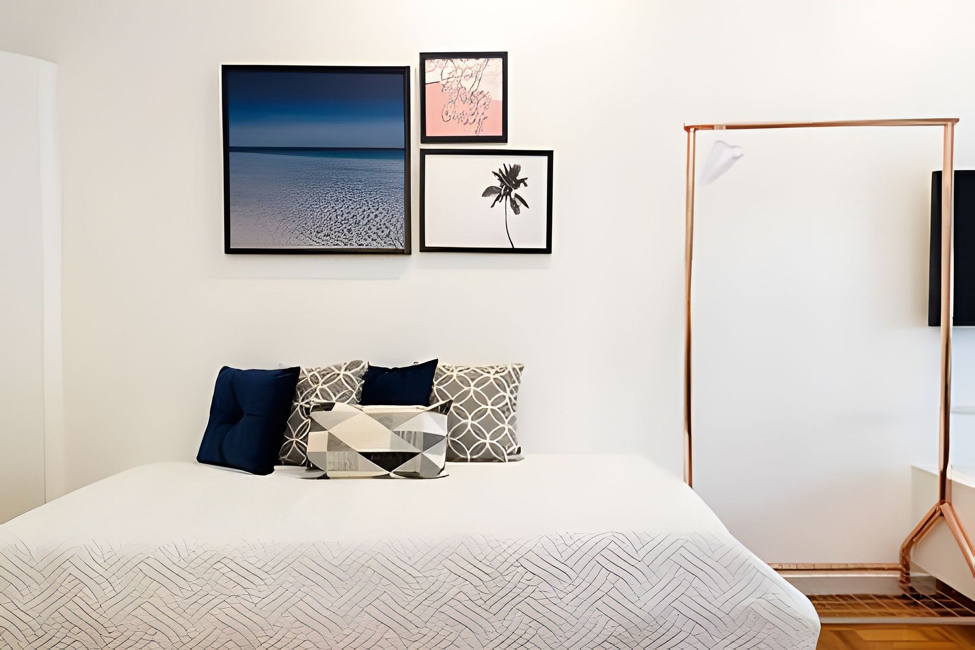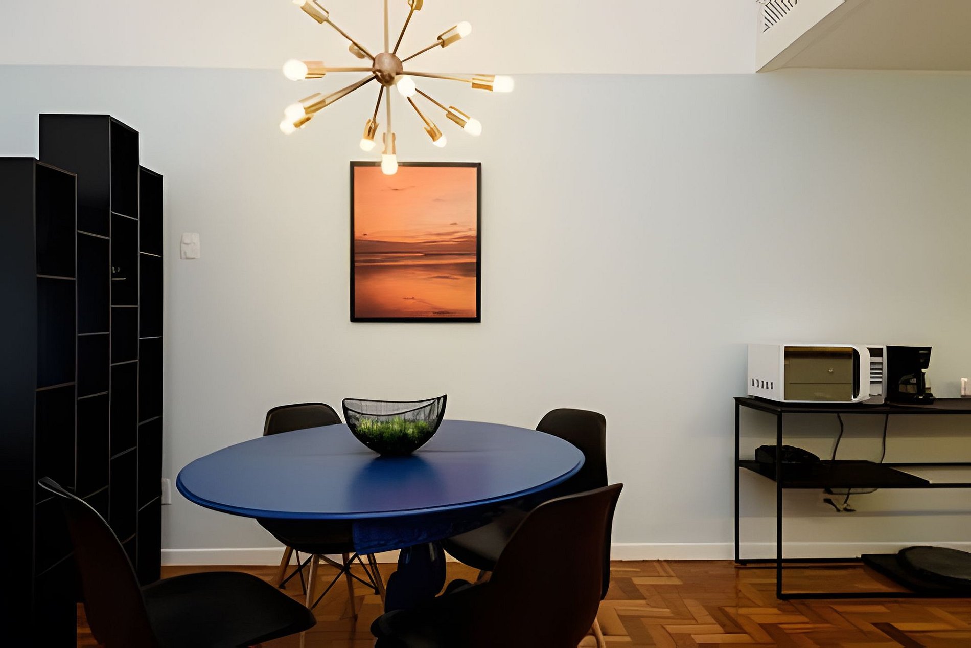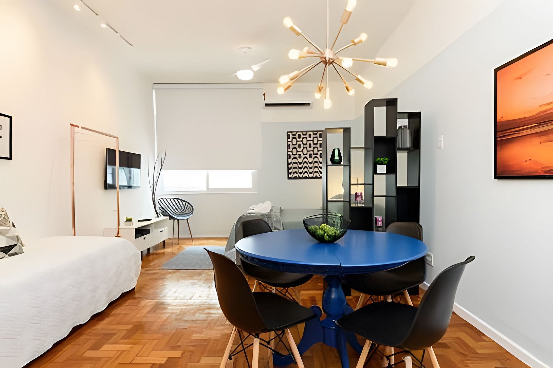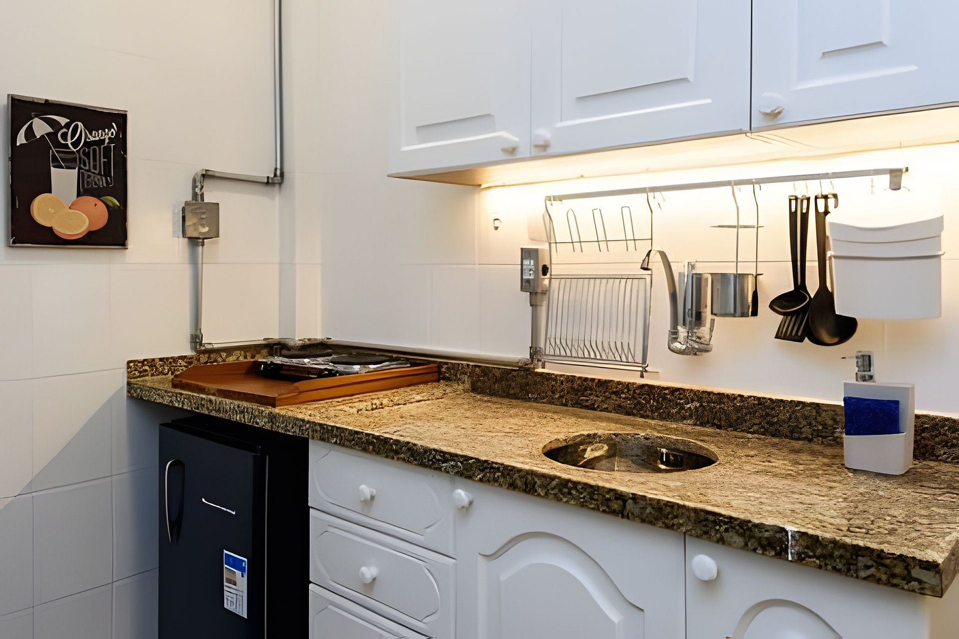 Este imóvel é um charmoso studio, confortável e finamente decorado. Possui uma cama queen e uma bicama. Está situado em um edifício residencial com portaria e segurança 24hs.